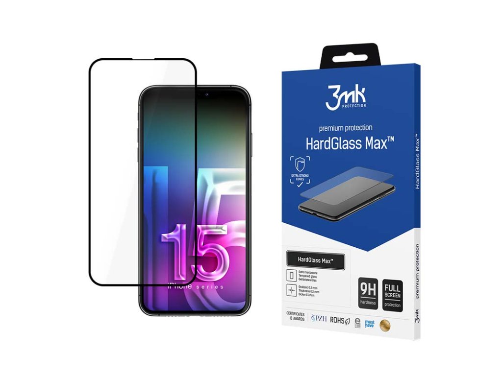 3mk HardGlass Max - Tvrzené sklo pro iPhone 15 Pro (černé)