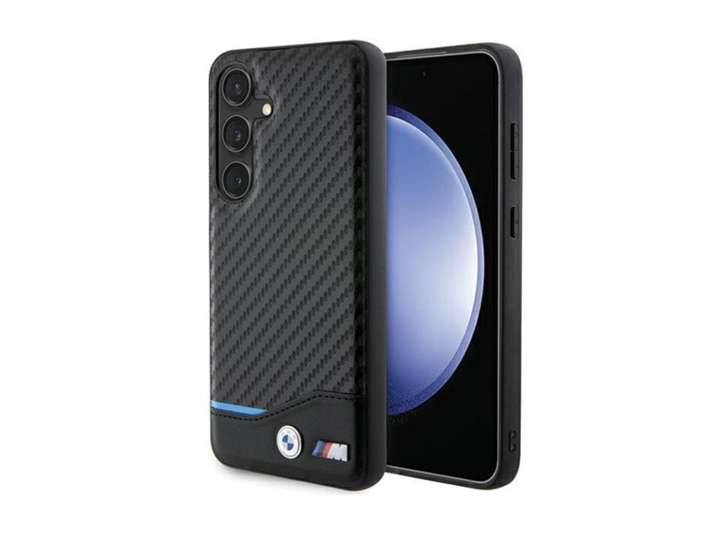 BMW Leather Carbon Blue Line - pouzdro pro Samsung Galaxy S24 (černé)