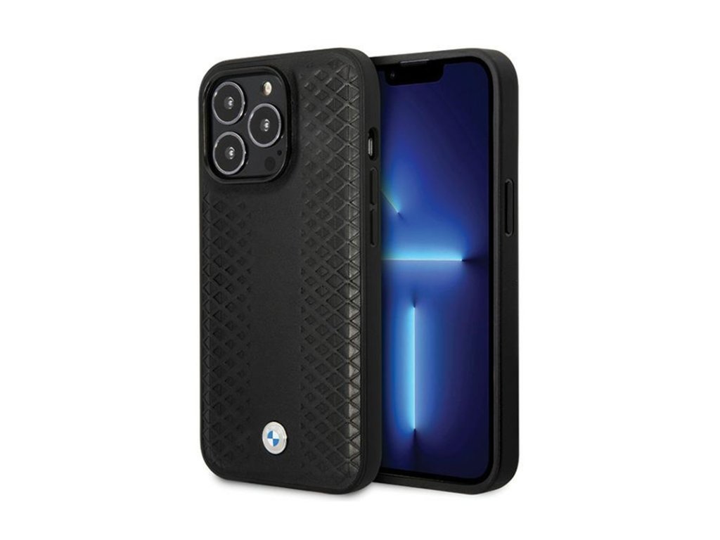BMW Leather Diamond Pattern - pouzdro pro iPhone 14 Pro (černé)