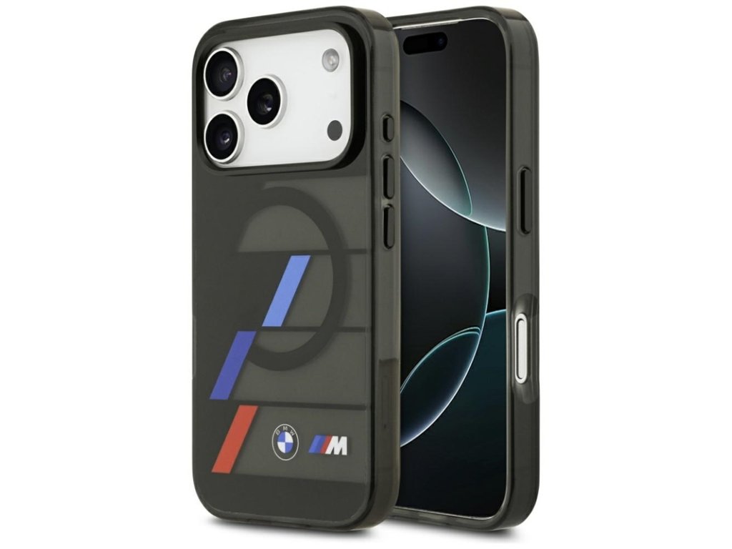 BMW M IML Metal Buttons Tricolor Lines MagSafe – Kryt iPhone 17 Pro (černý)