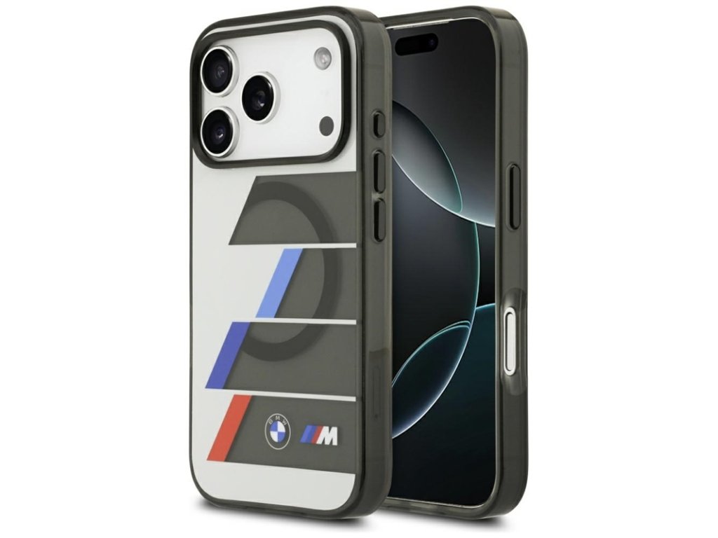 Pouzdro je vyrobeno z odolné kombinace PC/TPU, vybavené průsvitným tělem, které jemně odhaluje barvu telefonu a dodává mu moderní, technický vzhled. Zadní část je zdobena charakteristickým motivem BMW M – geometrickou grafikou s průsvitnými pruhy v ikonických barvách M (modrá, námořnicky modrá a červená) a logem BMW M, které zdůrazňuje autentičnost a jedinečnost designu.