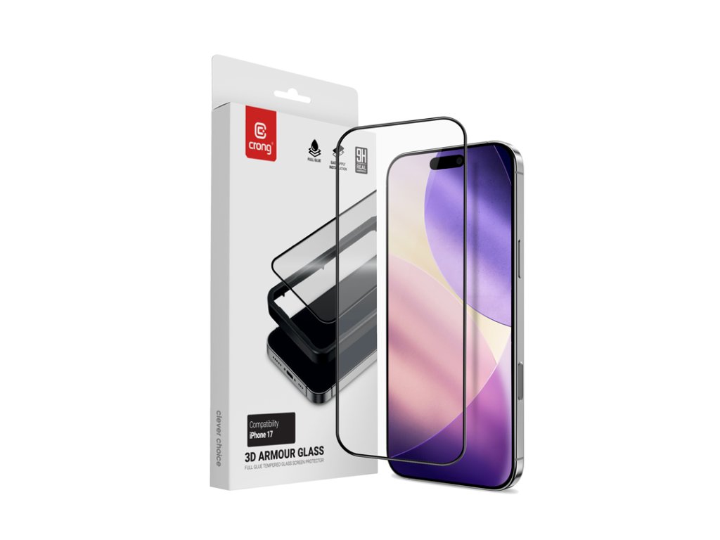 Crong 3D Armour Glass - Tvrzené sklo iPhone 17 + instalační rámeček