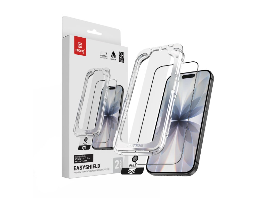Crong EasyShield™ 2-Pack – Spolehlivá ochrana obrazovky pro iPhone 17 / 17 Pro / 16 Pro