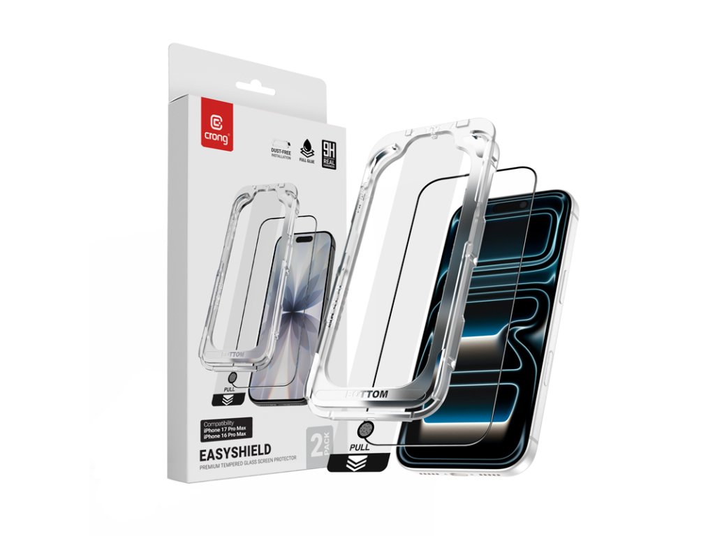 Crong EasyShield™ 2-Pack – Spolehlivá ochrana obrazovky pro iPhone 17 Pro Max / 16 Pro Max
