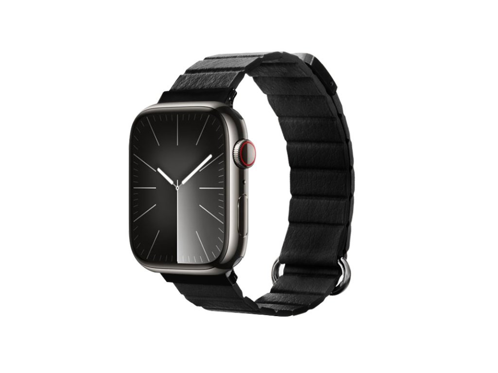 Crong Eclipse – Kožený magnetický řemínek pro Apple Watch 44/45/46/49 mm (černý)