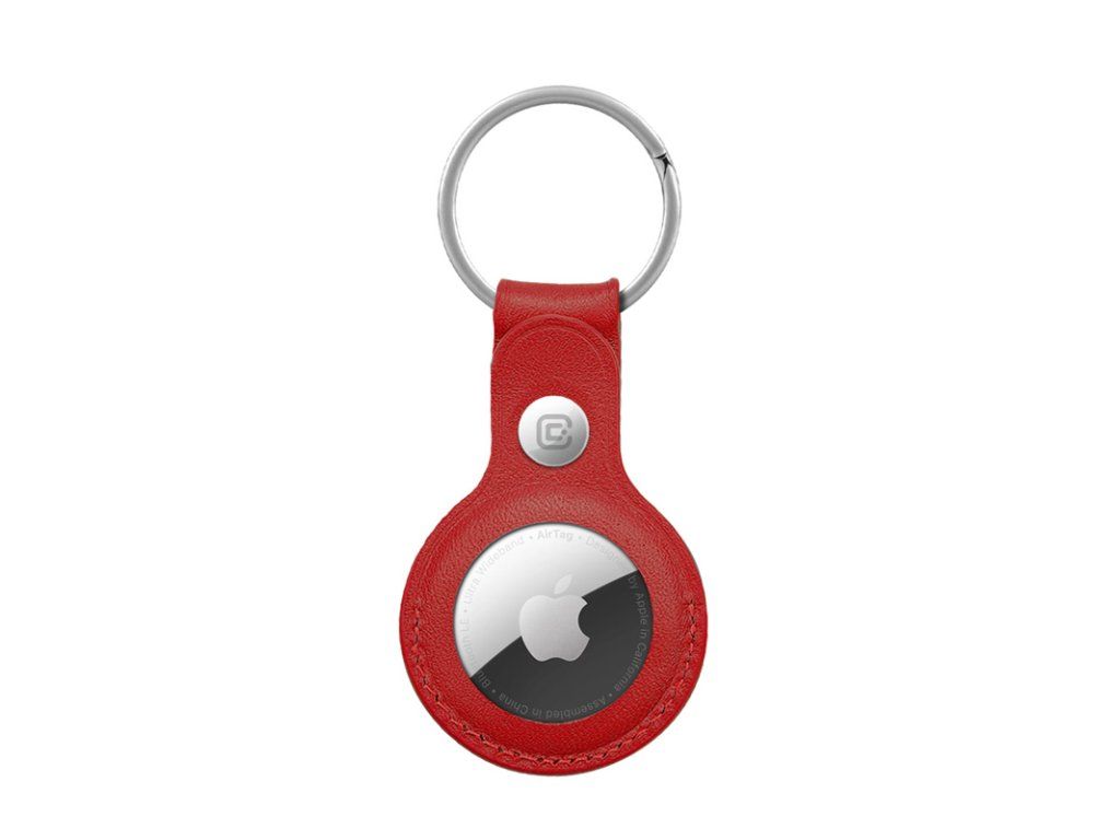 Crong Leather Case with Key Ring – Ochranné kožené pouzdro s klíčenkou pro Apple AirTag 1/2 (červené)
