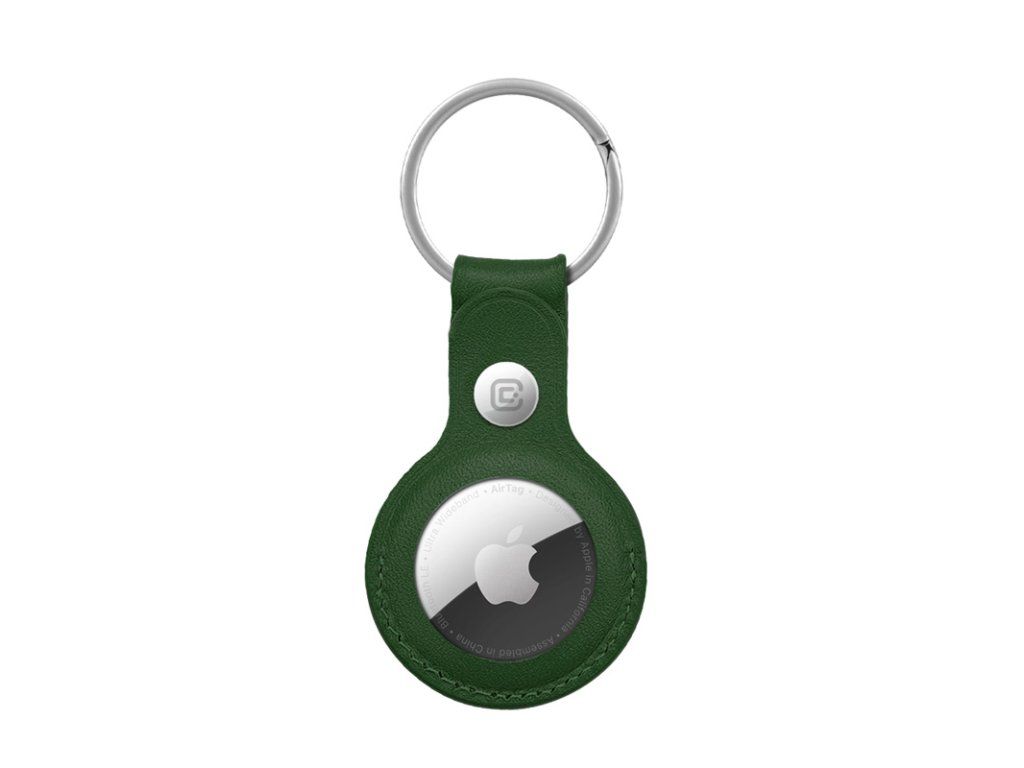 Crong Leather Case with Key Ring – Ochranné kožené pouzdro s klíčenkou pro Apple AirTag 1/2 (zelené)