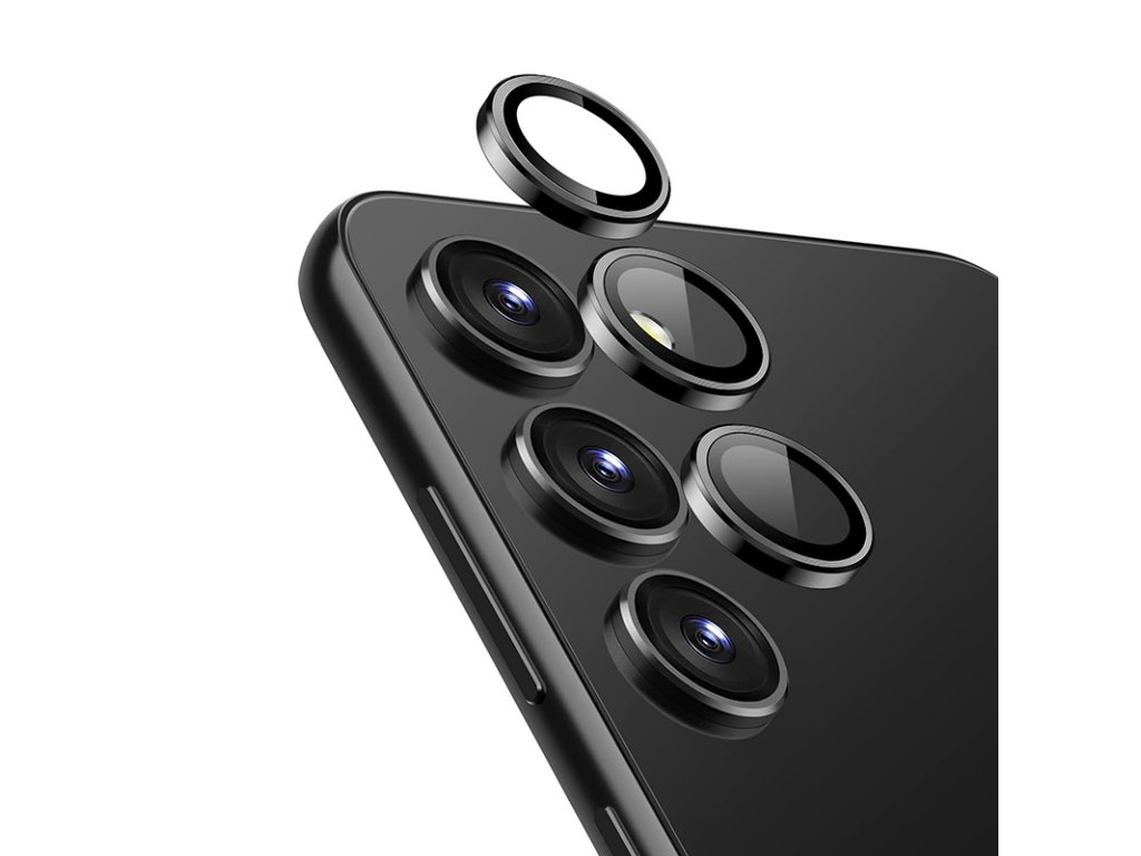 Kroužek Lens Ring pro Samsung Galaxy S24+ je sada vysoce kvalitních ochranných skel pro všechny tři čočky fotoaparátu na zadní straně telefonu. Jsou vyrobeny z 0,33 mm silného tvrzeného skla a hliníkových kroužků CNC, které poskytují dodatečnou ochranu při pádu fotoaparátu lícem dolů.