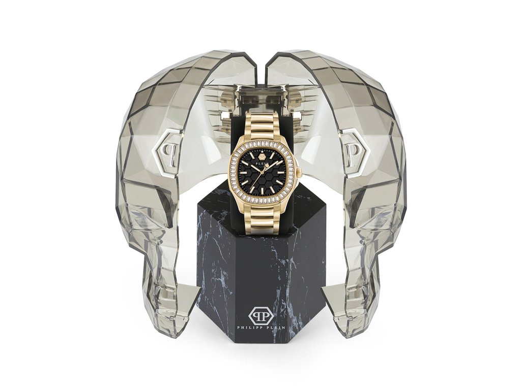 - Kolekce PLEIN obsahuje luxusní oblečení, módní doplňky a hodinky. Designově se jedná o výstřední, extravagantní a šokující modely s množstvím nápisů log a dalších detailů.