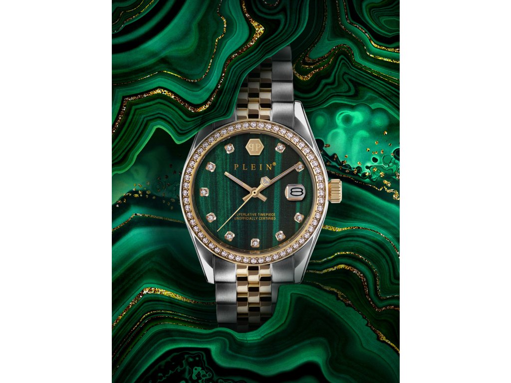 - Kolekce PLEIN obsahuje luxusní oblečení, módní doplňky a hodinky. Designově se jedná o výstřední, extravagantní a šokující modely s množstvím nápisů log a dalších detailů.