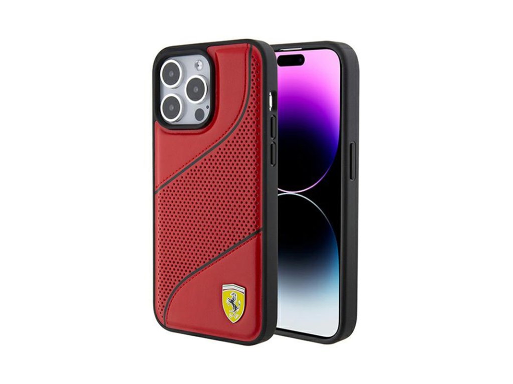Ferrari Perforated Waves Metal Logo - pouzdro pro iPhone 15 Pro (červené)