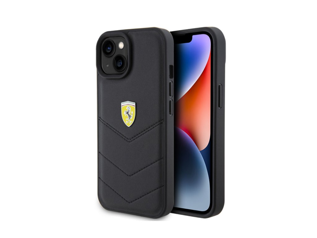 Ferrari Quilted Metal Logo - pouzdro pro iPhone 15 do auta (černé)