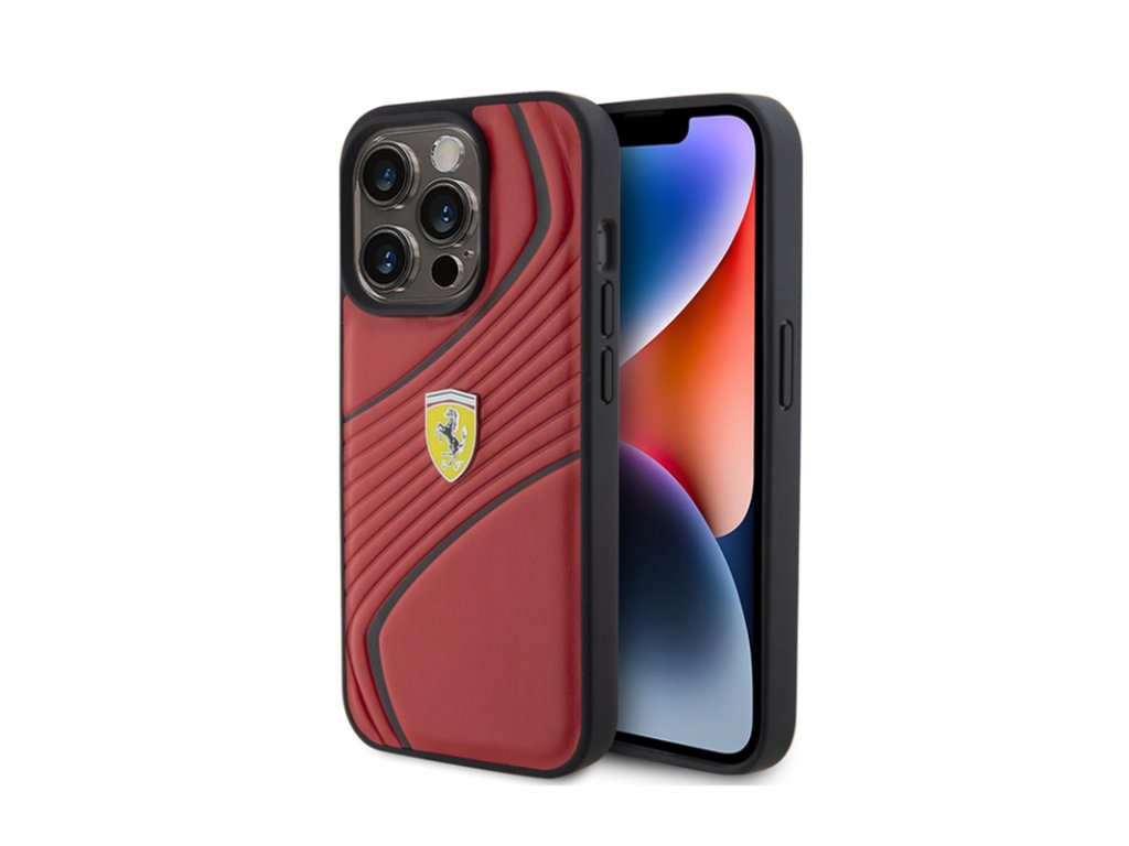 Ferrari Twist Metal Logo - pouzdro pro iPhone 15 Pro (červené)