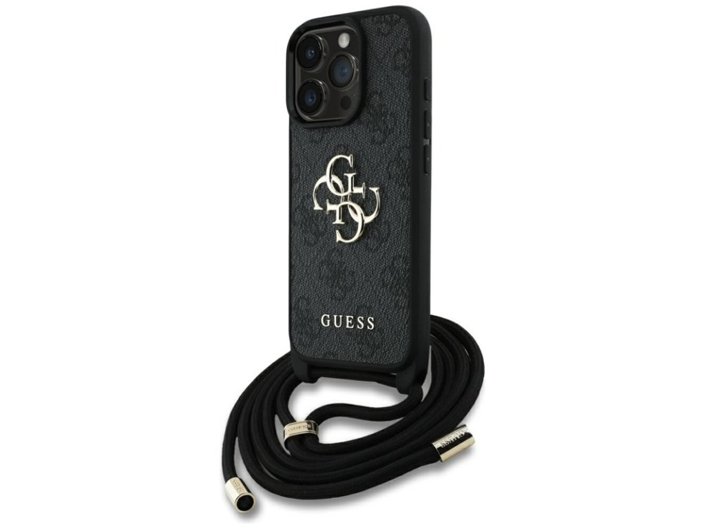 Guess 4G Big Logo Cord Strap Crossbody - Pouzdro pro iPhone 16 Pro Max (černý)