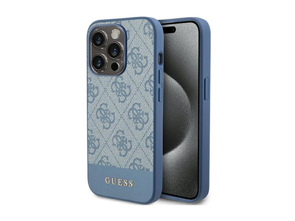 Guess 4G Bottom Stripe Metal Logo Collection - pouzdro pro iPhone 15 Pro (modré)