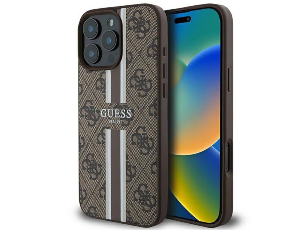 Guess 4G Printed Stripes MagSafe - Pouzdro iPhone 16 Pro Max (hnědé)