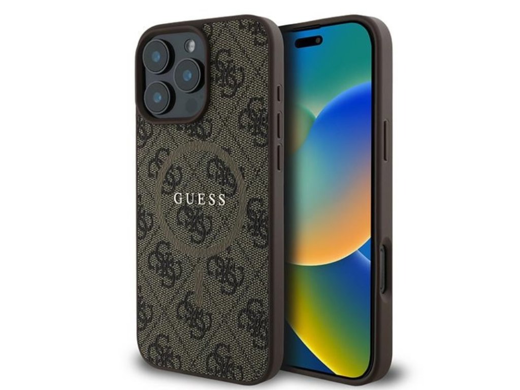 Guess 4G Ring Classic Logo MagSafe - Pouzdro pro iPhone 16 Pro (hnědý)