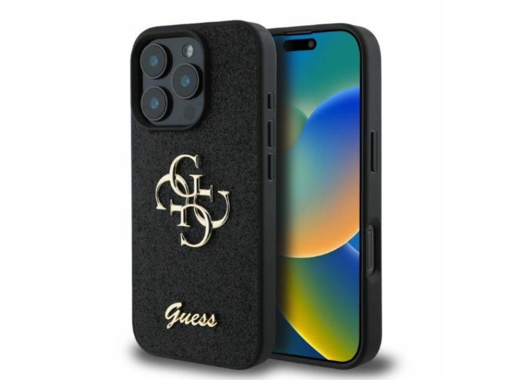 Guess Fixed Glitter Big 4G - Pouzdro iPhone 16 Pro (černé)