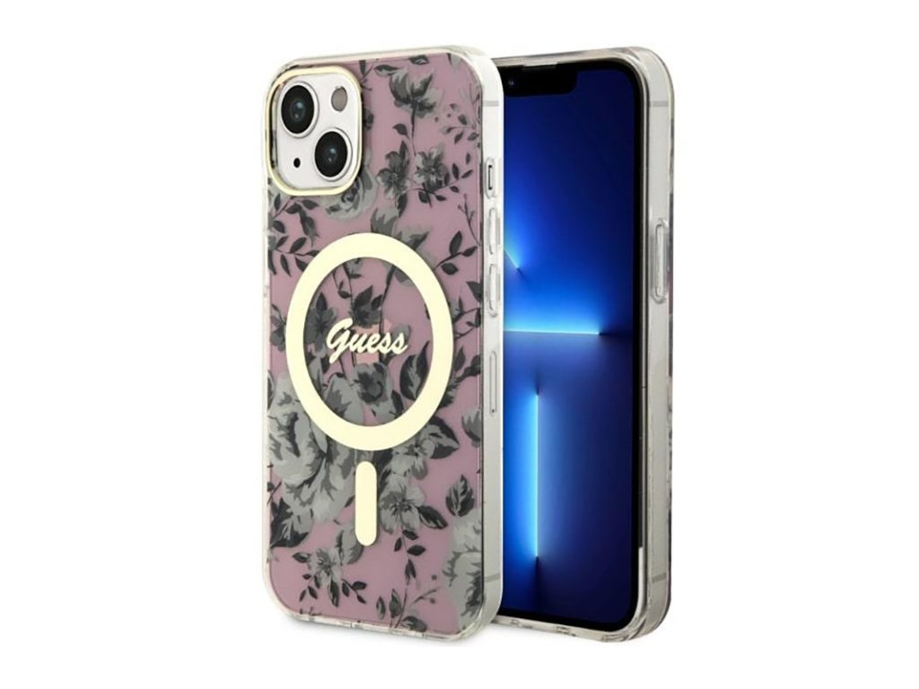 Guess Flower MagSafe - pouzdro pro iPhone 14 (růžové)