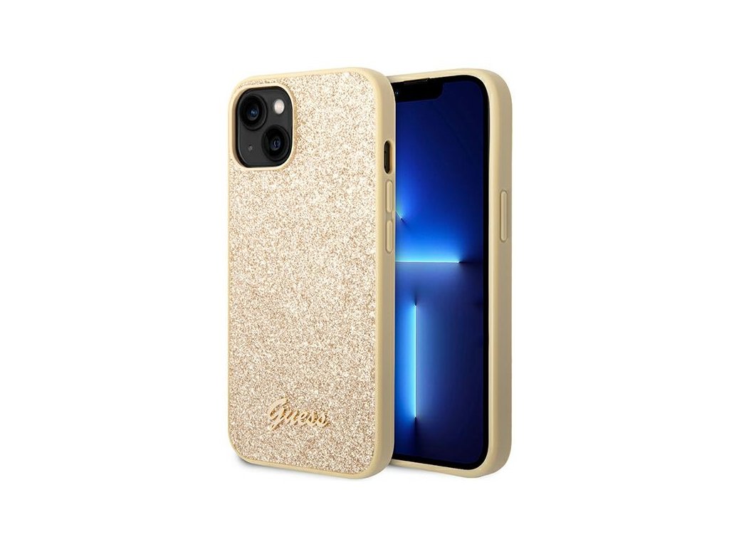 Guess Glitter Flakes Metal Logo Case - pouzdro pro iPhone 14 (zlaté)