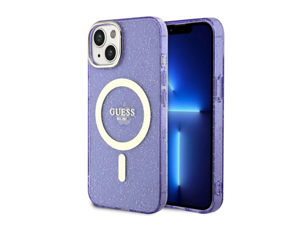 Guess Glitter Gold MagSafe - pouzdro pro iPhone 14 (fialové)