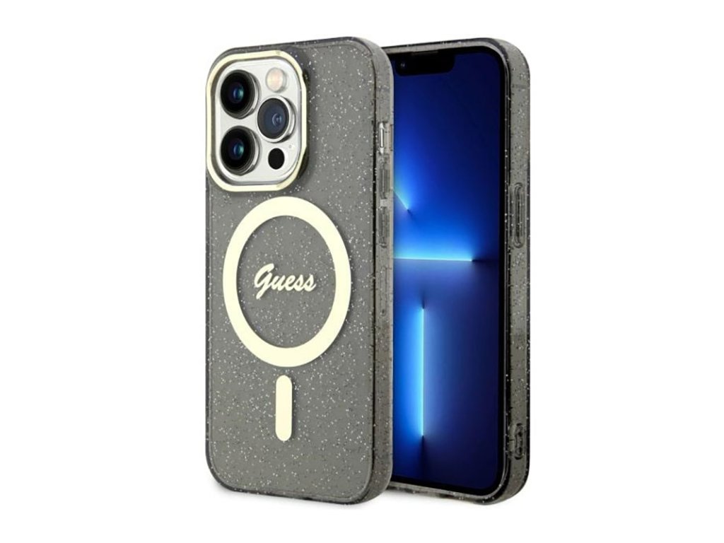 Guess Glitter Gold MagSafe - pouzdro pro iPhone 14 Pro (černé)