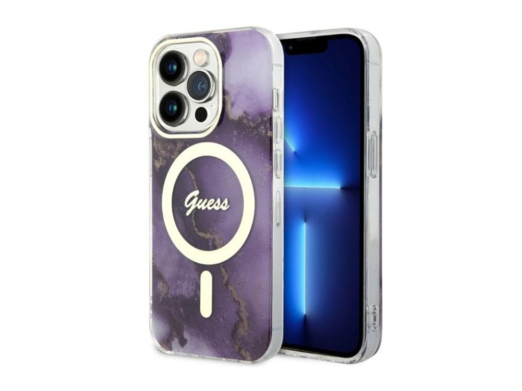 Guess Golden Marble MagSafe - pouzdro pro iPhone 14 Pro (fialové)