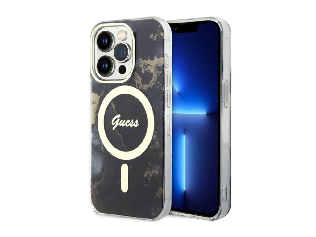 Guess Golden Marble MagSafe - pouzdro pro iPhone 14 Pro Max (černé)