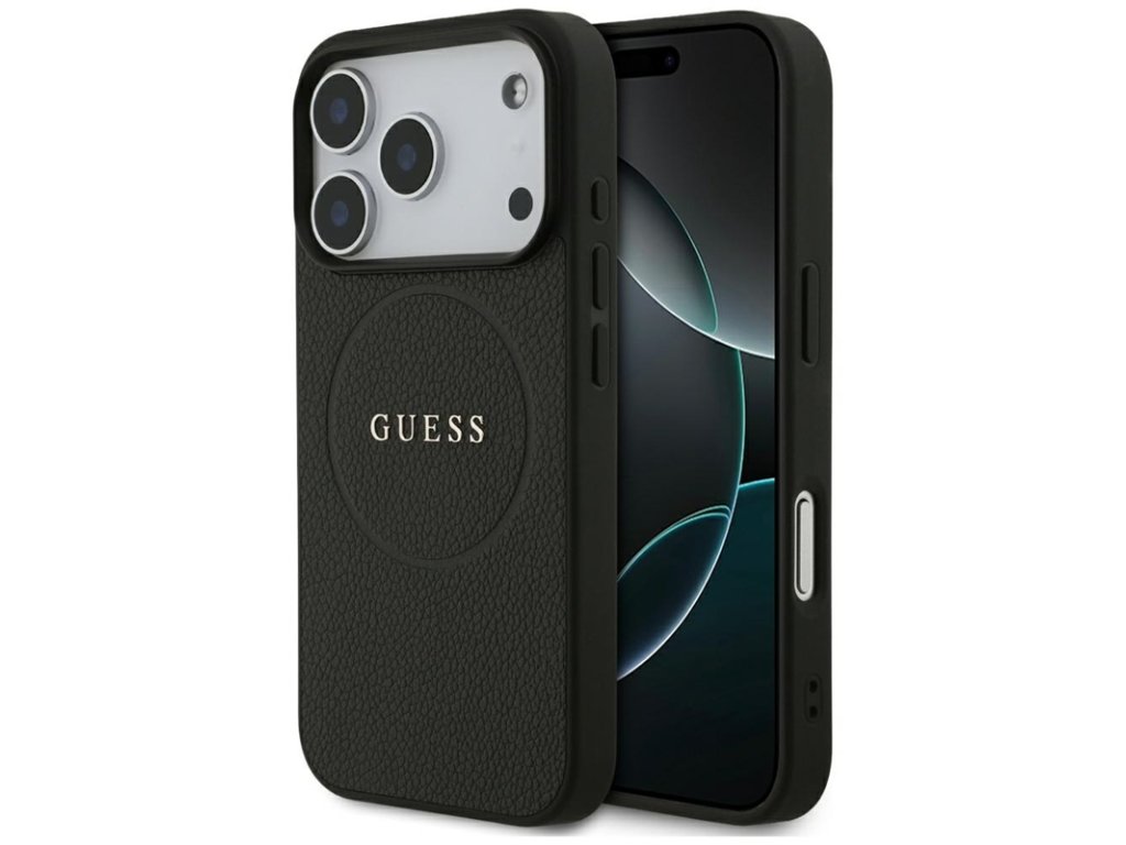 Guess Grained Ring MagSafe - Pouzdro iPhone 17 Pro (černý)