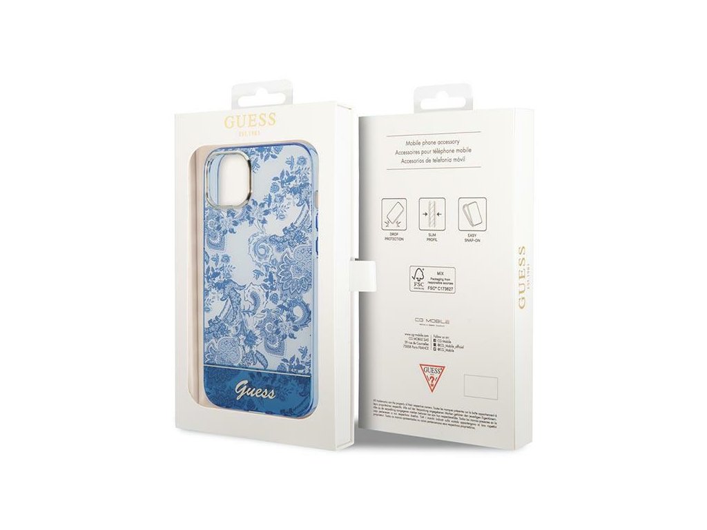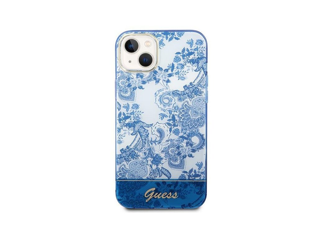 Guess GUHCP14MHGPLHB Apple iPhone 14 Plus / 15 Plus blue hardcase Porcelain Collection