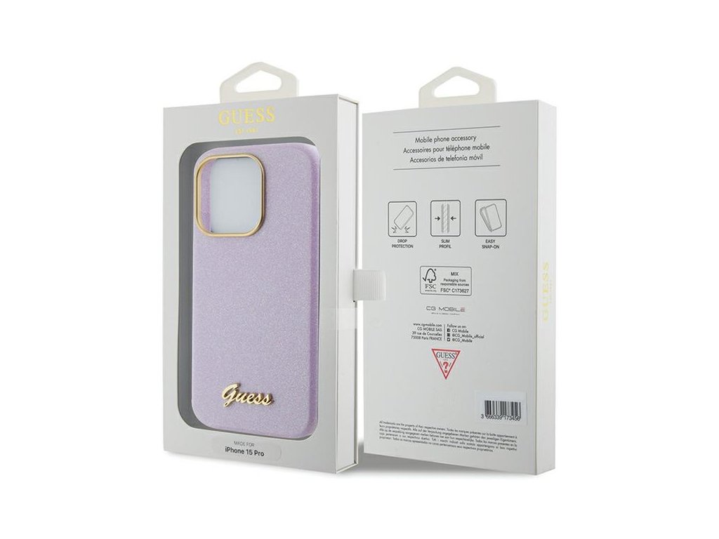 Guess GUHCP15XPGMCSL Apple iPhone 15 Pro Max hardcase Glitter Glossy Script lilac