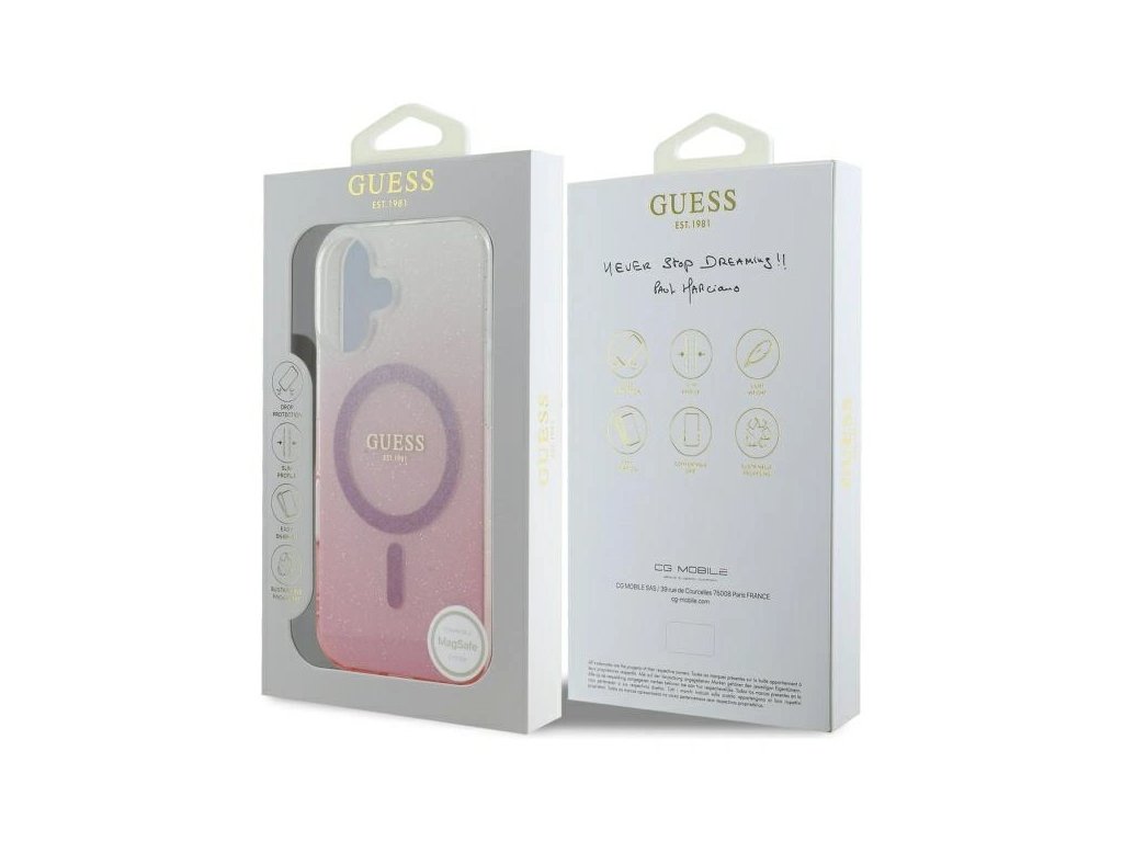 Guess GUHMP16MHGRCELP Apple iPhone 16 Plus hardcase IML Glitter Gradient MagSafe pink