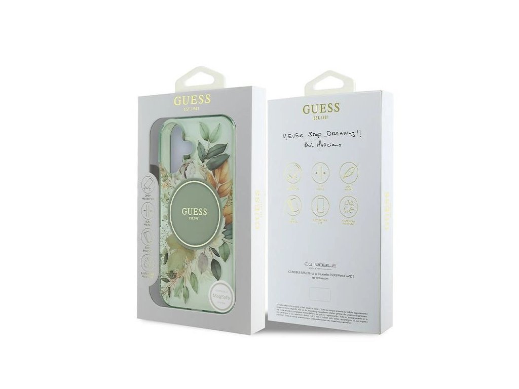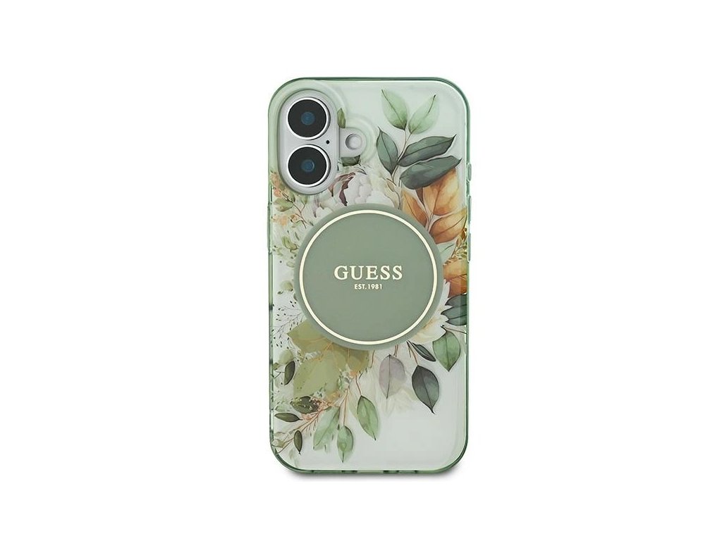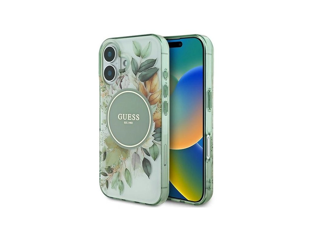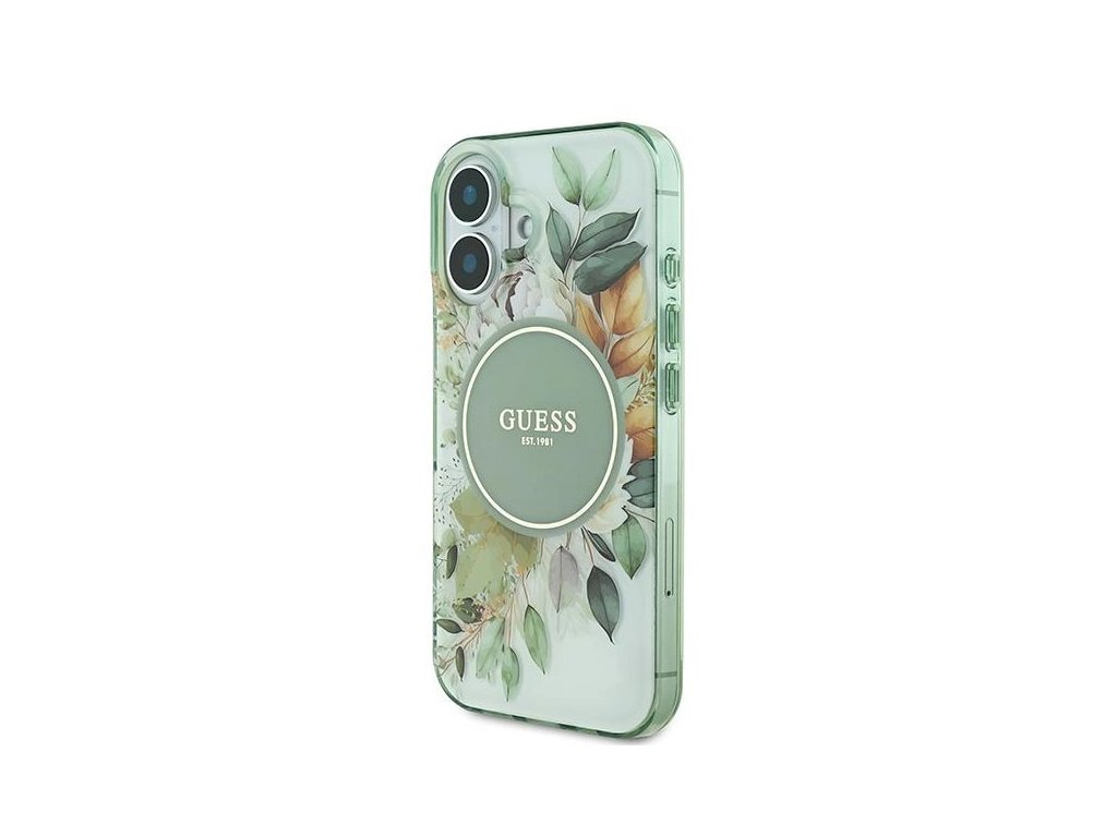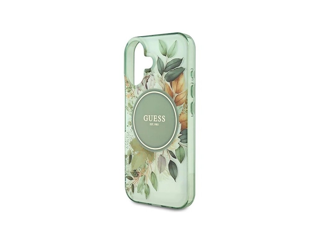 Guess GUHMP16SHFWBDCEN Apple iPhone 16 hardcase IML Flower & Tonal Circle MagSafe green