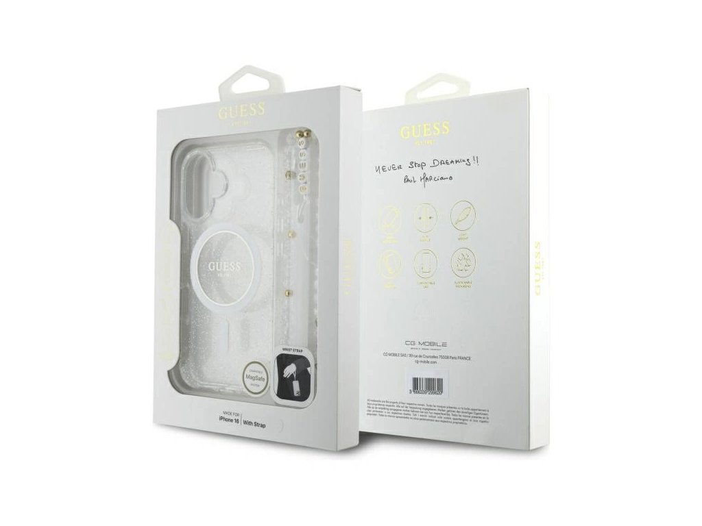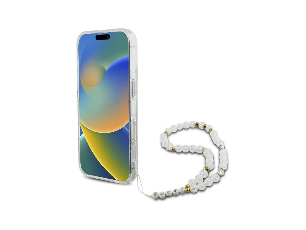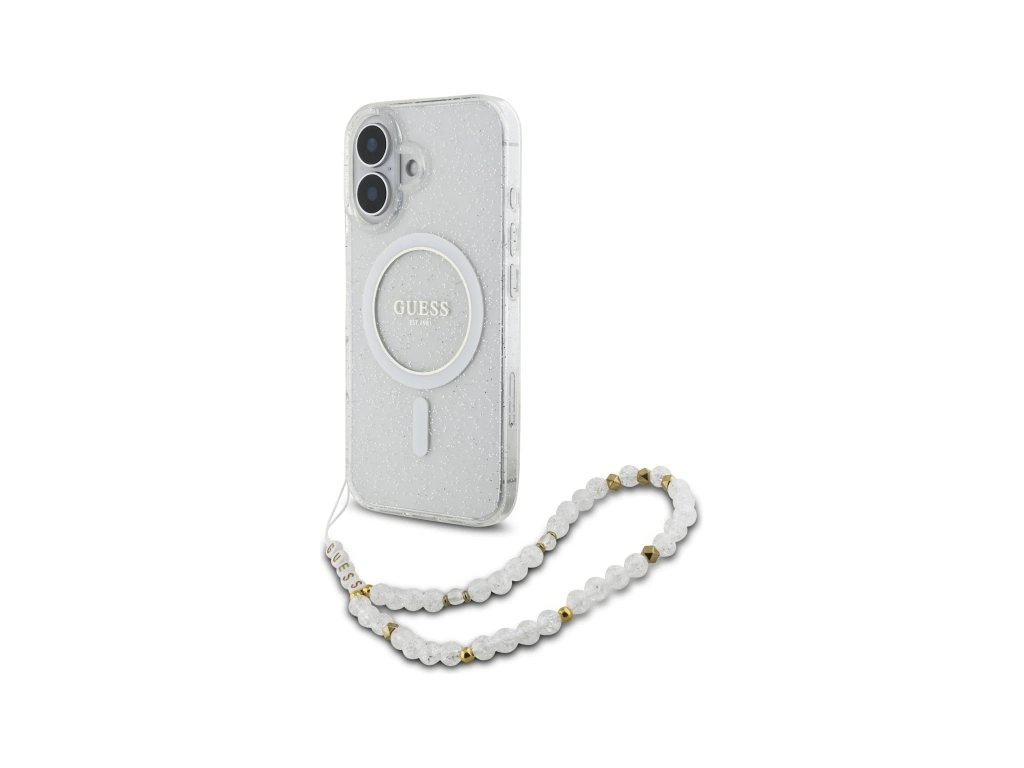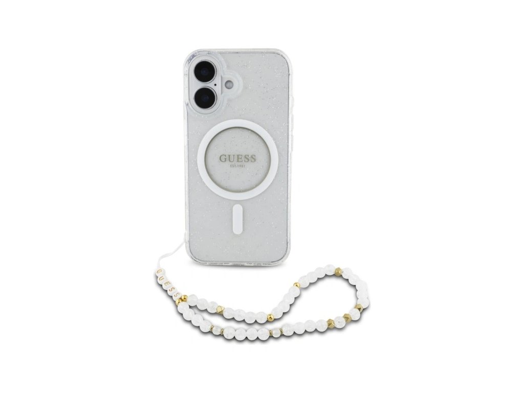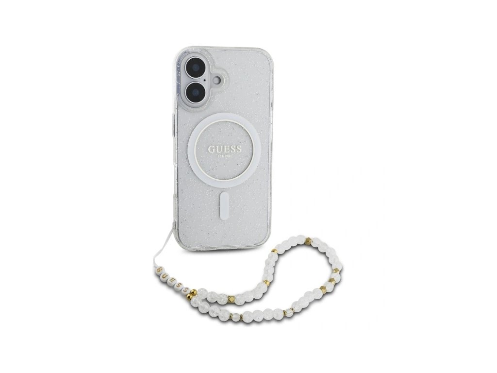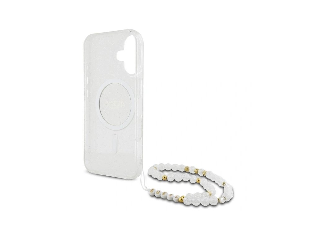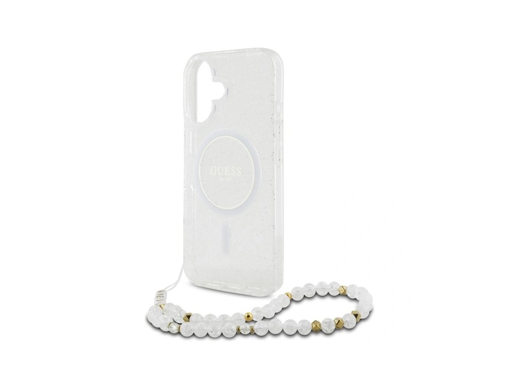Guess GUHMP16SHGCRELST Apple iPhone 16 hardcase IML Glitter With Pearl Strap MagSafe transparent