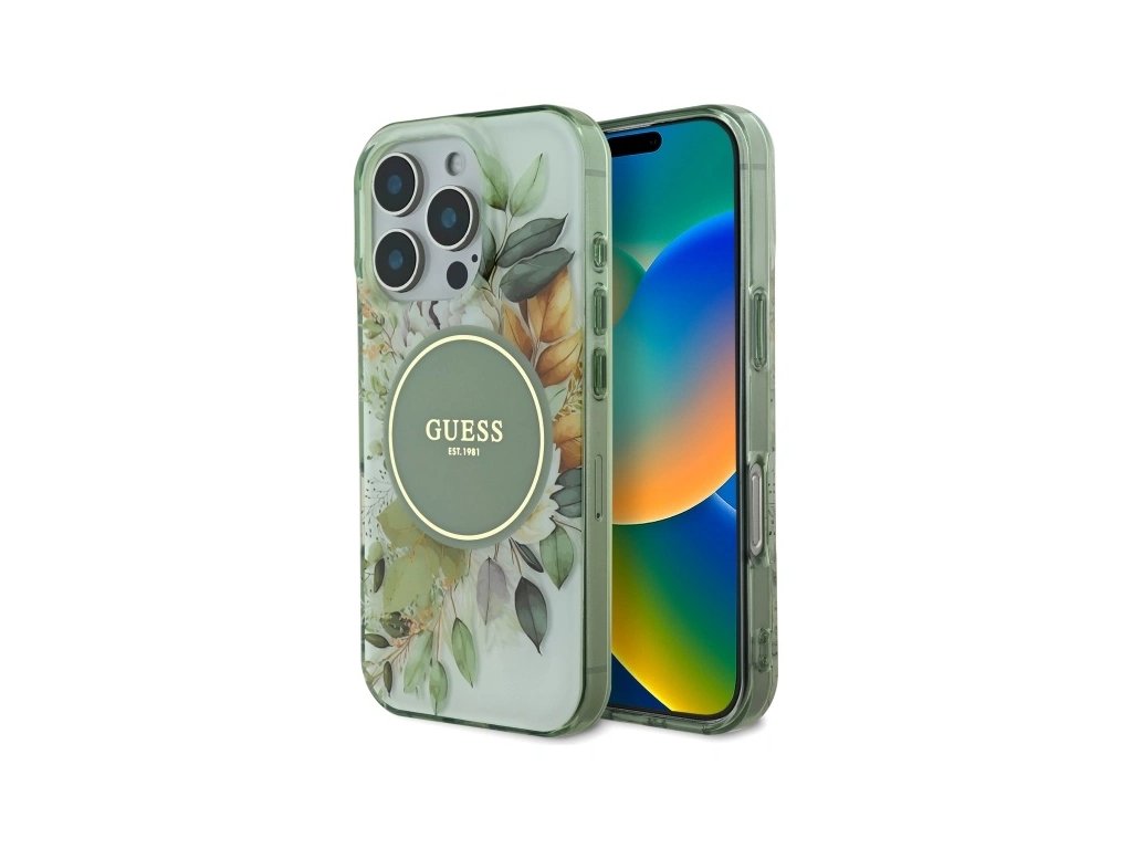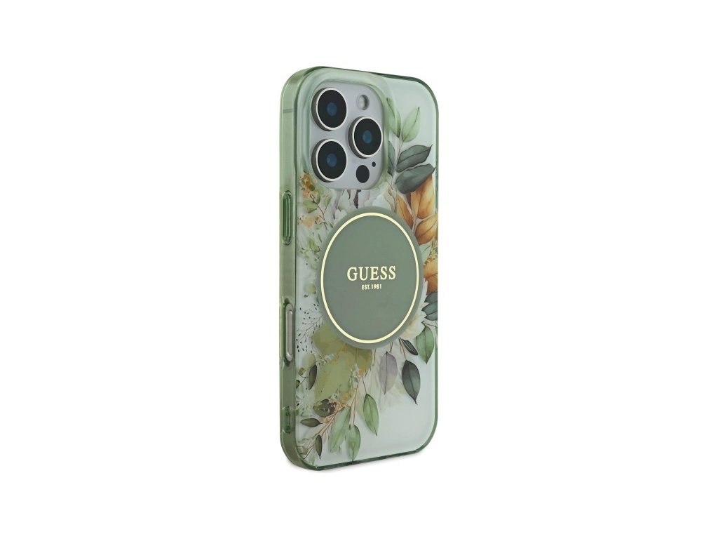 Guess GUHMP16XHFWBDCEN Apple iPhone 16 Pro Max hardcase IML Flower & Tonal Circle MagSafe green