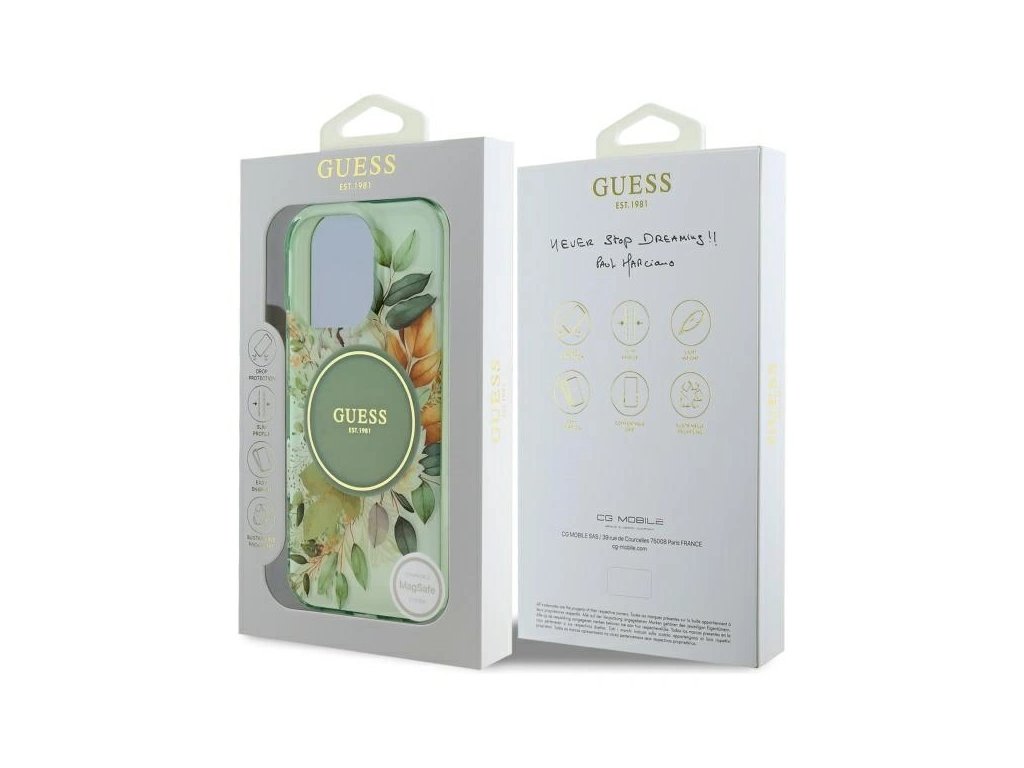 Tato elegantní kolekce potěší i ty nejnáročnější a nejvytříbenější chutě. Vrchní vrstva krytu zaujme jemným květinovým vzorem v odstínech, které ladí s barvou pouzdra a tvoří tak ucelený celek. Uprostřed je zlatý prsten MagSafe, dokonale zvýrazňující logo GUESS umístěné na růžovém pozadí. Tento jedinečný design dodává nejen eleganci, ale poskytuje i funkčnost a ochranu, díky čemuž je kryt stylovým doplňkem pro náročné uživatele.