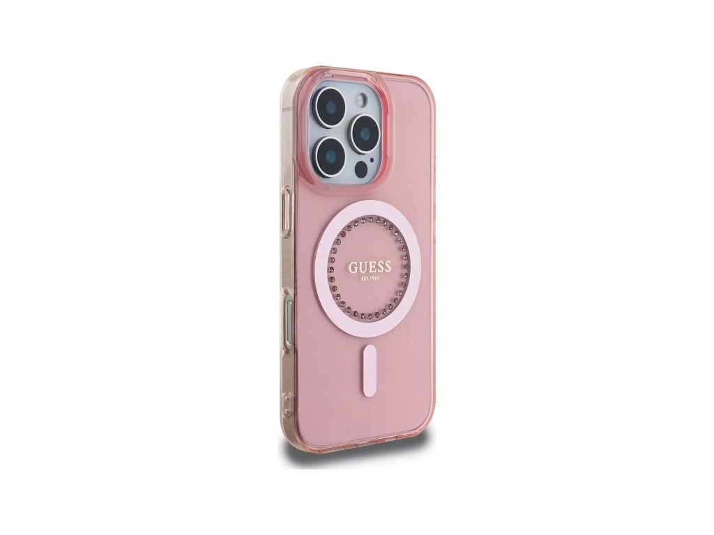 Guess GUHMP16XPFTDTEP Apple iPhone 16 Pro Max hardcase IML Rhinestones MagSafe pink