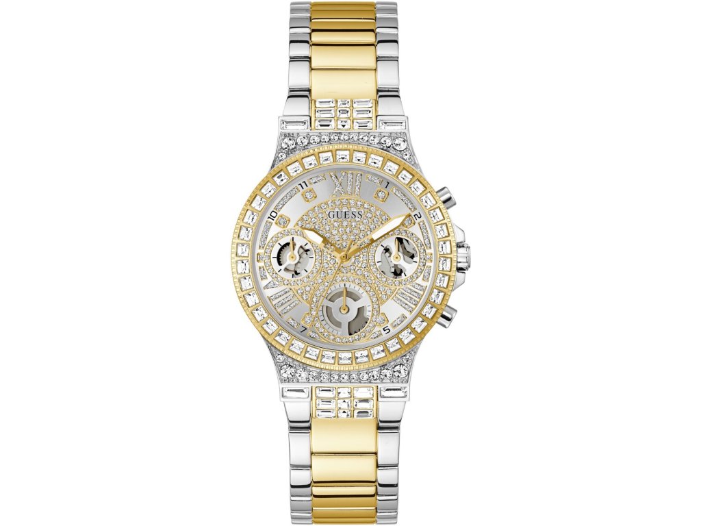 • Manufacturer no.: GW0320L7 • Manufacturer series: Moonlight 36mm 3ATM • Functions: 24-hours, Date, Minute, Second, Hour, Day • Movement: Battery (quartz) • Dial color: Golden, Silver • Display: Analog • Water resistant: 3 • Bezel: Fixed • Surface finish: Polished • Case color: Gold, Silver • Case material: Stainless steel • Case thickness: 11 • Case shape: Round • Case trimming: Zirconia • Case width: 36 • Caseback: Stainless steel bottom, pressed • Gender: Ladies • Glas: hardened, Mineral glass • Style: Modern • Strap material: Stainless steel • Strap color: Gold, Silver • Lug width: 18 • Clasp: Folding clasp • Max wrist circumferences: 185 • Item weight: 0.10 • Scope of delivery: Instruction, Box, Warranty doc., Packaging