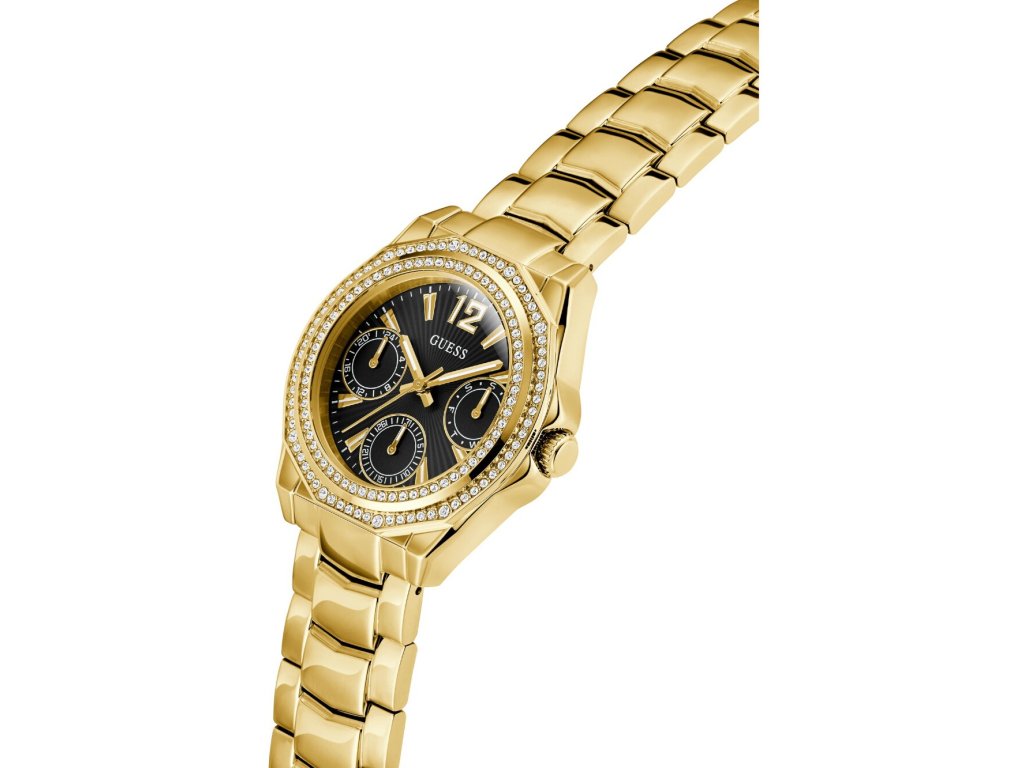 • Manufacturer no.: GW0685L4 • Manufacturer series: Ritzy 36mm 5ATM • Functions: 24-hours, Date, Minute, Second, Hour, Day • Movement: Battery (quartz) • Dial color: Black • Display: Analog • Water resistant: 5 • Bezel: Fixed • Surface finish: Polished • Case color: Gold • Case material: Stainless steel • Case thickness: 10 • Case shape: Round • Case trimming: Zirconia • Case width: 36 • Caseback: Stainless steel bottom, pressed • Gender: Ladies • Glas: hardened, Mineral glass • Style: Modern • Strap material: Stainless steel • Strap color: Gold • Lug width: 18 • Clasp: Folding clasp • Max wrist circumferences: 180 • Item weight: 0.11 • Scope of delivery: Instruction, Box, Warranty doc., Packaging