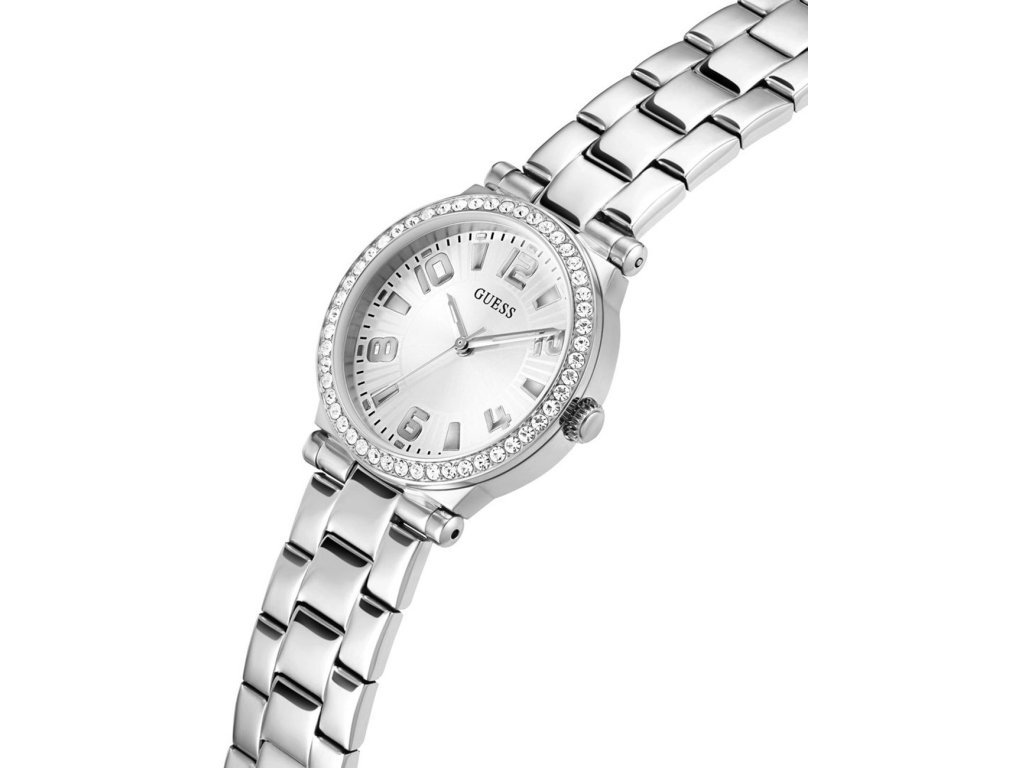 • Manufacturer no.: GW0686L1 • Manufacturer series: Fawn 32mm 1ATM • Functions: Minute, Second, Hour • Movement: Battery (quartz) • Movement label: Japan • Dial color: White • Display: Analog • Water resistant: 1 • Bezel: Fixed • Surface finish: Polished • Case color: Silver • Case material: Stainless steel • Case thickness: 8 • Case shape: Round • Case trimming: Zirconia • Case width: 32 • Caseback: Stainless steel bottom, pressed • Gender: Ladies • Glas: hardened, Mineral glass • Style: Classic • Strap material: Stainless steel • Strap color: Silver • Lug width: 7 • Clasp: Folding clasp • Max wrist circumferences: 190 • Item weight: 0.08 • Scope of delivery: Instruction, Box, Warranty doc., Packaging