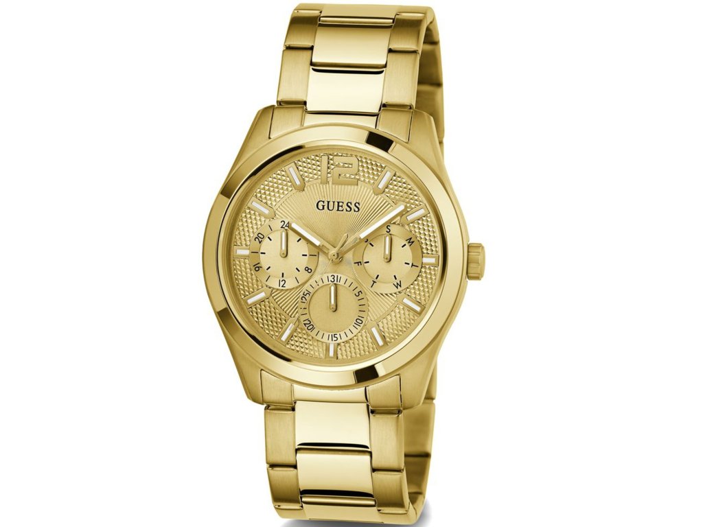 • Manufacturer no.: GW0707G3 • Manufacturer series: Zen 42mm 5ATM • Functions: 24-hours, Date, Minute, Second, Hour, Day • Movement: Battery (quartz) • Movement label: Japan • Dial color: Golden • Display: Analog • Water resistant: 5 • Bezel: Fixed • Surface finish: Matted • Case color: Gold • Case material: Stainless steel • Case thickness: 11 • Case shape: Round • Case width: 42 • Caseback: Stainless steel bottom, pressed • Gender: Mens • Glas: hardened, Mineral glass • Lighting: Illum. indexes, Illum. hands • Style: Modern • Strap material: Stainless steel • Strap color: Gold • Lug width: 22 • Clasp: Folding clasp • Max wrist circumferences: 200 • Item weight: 0.13 • Scope of delivery: Instruction, Box, Warranty doc., Packaging