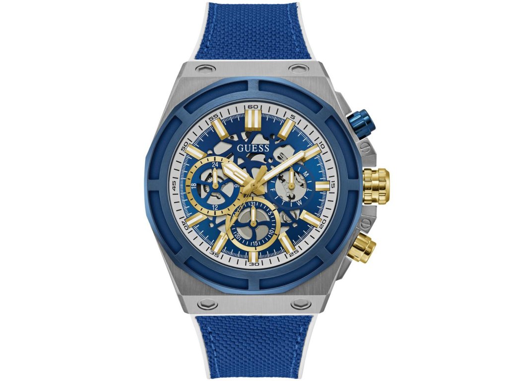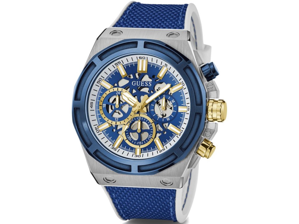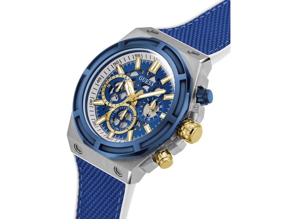 • Manufacturer no.: GW0713G1 • Manufacturer series: Masterpiece 50mm 5ATM • Functions: 24-hours, Date, Minute, Second, Hour, Day • Movement: Battery (quartz) • Movement label: Japan • Dial color: Blue • Display: Analog • Water resistant: 5 • Bezel: Fixed • Surface finish: Matted • Case color: Silver • Case material: Stainless steel • Case thickness: 13 • Case shape: Round • Case width: 50 • Caseback: Stainless steel bottom, screwed • Gender: Mens • Glas: hardened, Mineral glass • Lighting: Illum. indexes, Illum. hands • Style: Sporty • Strap material: Silicon • Strap color: Blue, white • Lug width: 22 • Clasp: Buckle clasp • Max wrist circumferences: 220 • Item weight: 0.12 • Scope of delivery: Instruction, Box, Warranty doc., Packaging