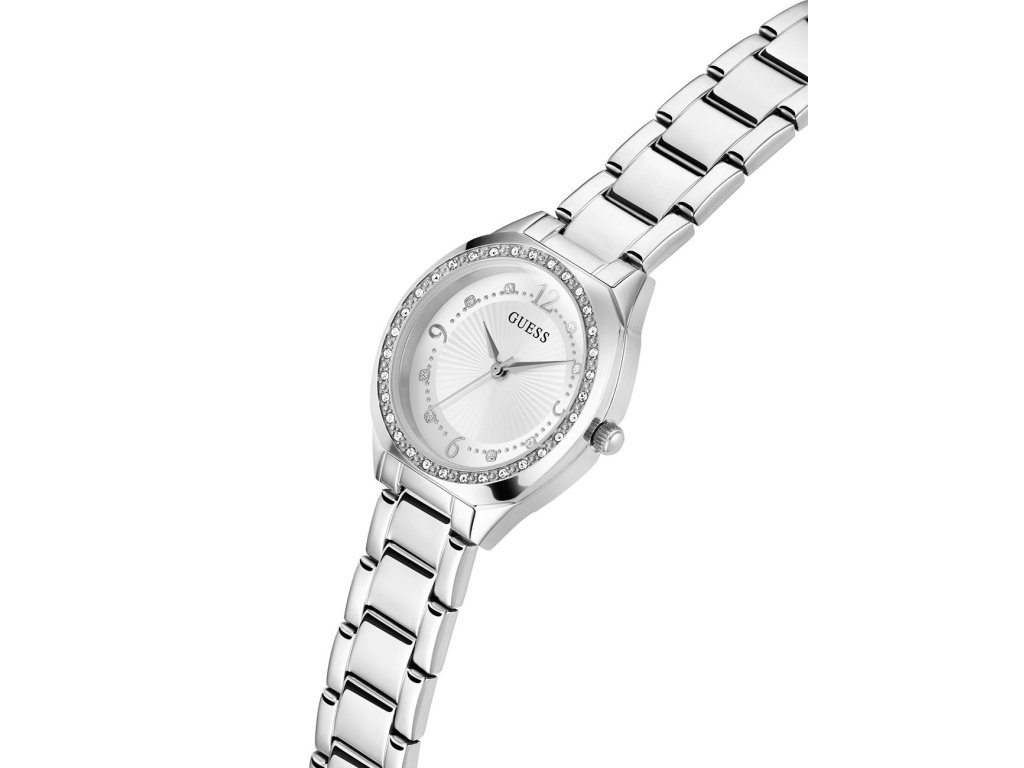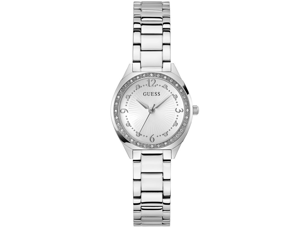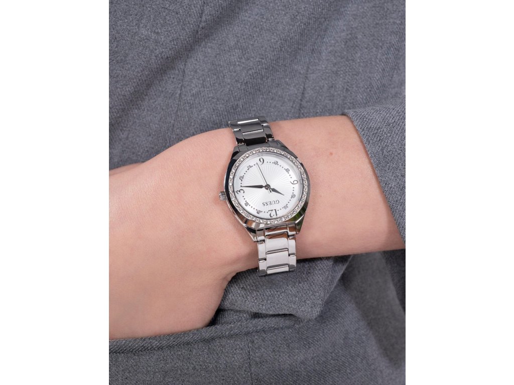 • Manufacturer no.: GW0767L1 • Manufacturer series: Charlotte 30mm 1ATM • Functions: Minute, Second, Hour • Movement: Battery (quartz) • Movement label: Japan • Dial color: White • Display: Analog • Water resistant: 1 • Bezel: Fixed • Surface finish: Polished • Case color: Silver • Case material: Stainless steel • Case thickness: 8 • Case shape: Round • Case trimming: Zirconia • Case width: 30 • Caseback: Stainless steel bottom, pressed • Gender: Ladies • Glas: hardened, Mineral glass • Style: Modern • Strap material: Stainless steel • Strap color: Silver • Lug width: 8 • Clasp: Folding clasp • Max wrist circumferences: 190 • Item weight: 0.07 • Scope of delivery: Instruction, Box, Warranty doc., Packaging
