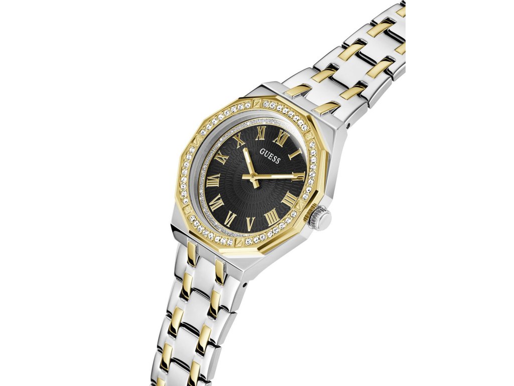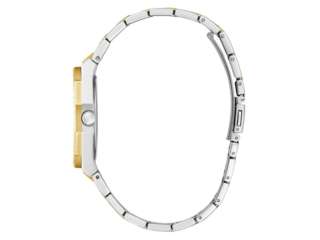 • Manufacturer no.: GW0770L4 • Manufacturer series: Desire 36mm 5ATM • Functions: Minute, Hour • Movement: Battery (quartz) • Movement label: Japan • Dial color: Black • Display: Analog • Water resistant: 5 • Bezel: Fixed • Surface finish: Polished • Case color: Silver • Case material: Stainless steel • Case thickness: 9 • Case shape: Square • Case width: 36 • Caseback: Stainless steel bottom, pressed • Gender: Ladies • Glas: hardened, Mineral glass • Lighting: Illum. hands • Style: Modern • Strap material: Stainless steel • Strap color: Gold, Silver • Lug width: 10 • Clasp: Folding clasp • Max wrist circumferences: 190 • Item weight: 0.09 • Scope of delivery: Instruction, Box, Warranty doc., Packaging