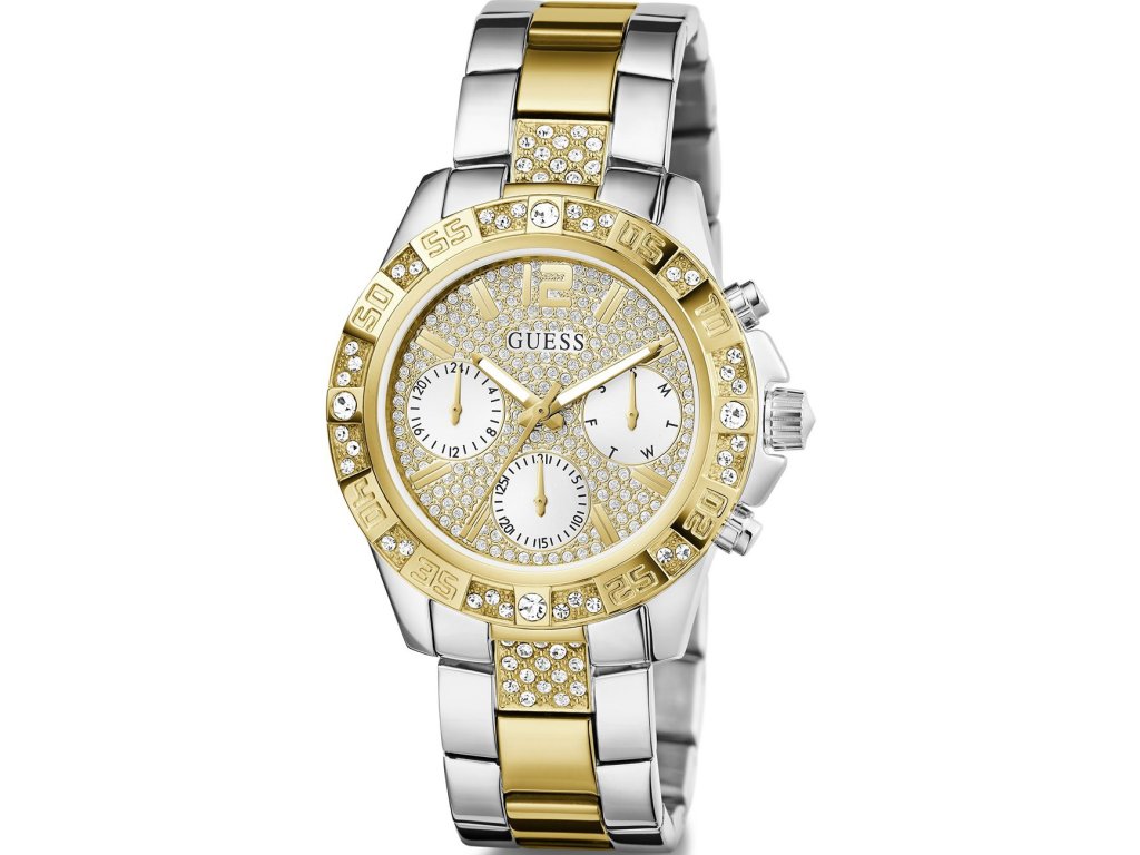 • Manufacturer no.: GW0771L3 • Manufacturer series: Majesty 42mm 5ATM • Functions: 24-hours, Date, Minute, Second, Hour, Day • Movement: Battery (quartz) • Movement label: Japan • Dial color: Golden • Display: Analog • Water resistant: 5 • Bezel: Fixed • Surface finish: Polished • Case color: Silver • Case material: Stainless steel • Case thickness: 11 • Case shape: Round • Case trimming: Zirconia • Case width: 42 • Caseback: Stainless steel bottom, screwed • Gender: Ladies • Glas: hardened, Mineral glass • Lighting: Illum. hands • Style: Modern • Strap material: Stainless steel • Strap color: Gold, Silver • Lug width: 10 • Clasp: Folding clasp • Max wrist circumferences: 200 • Item weight: 0.13 • Scope of delivery: Instruction, Box, Warranty doc., Packaging