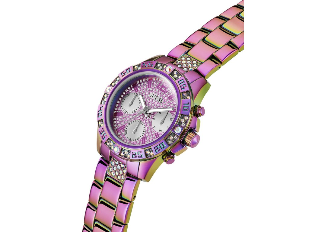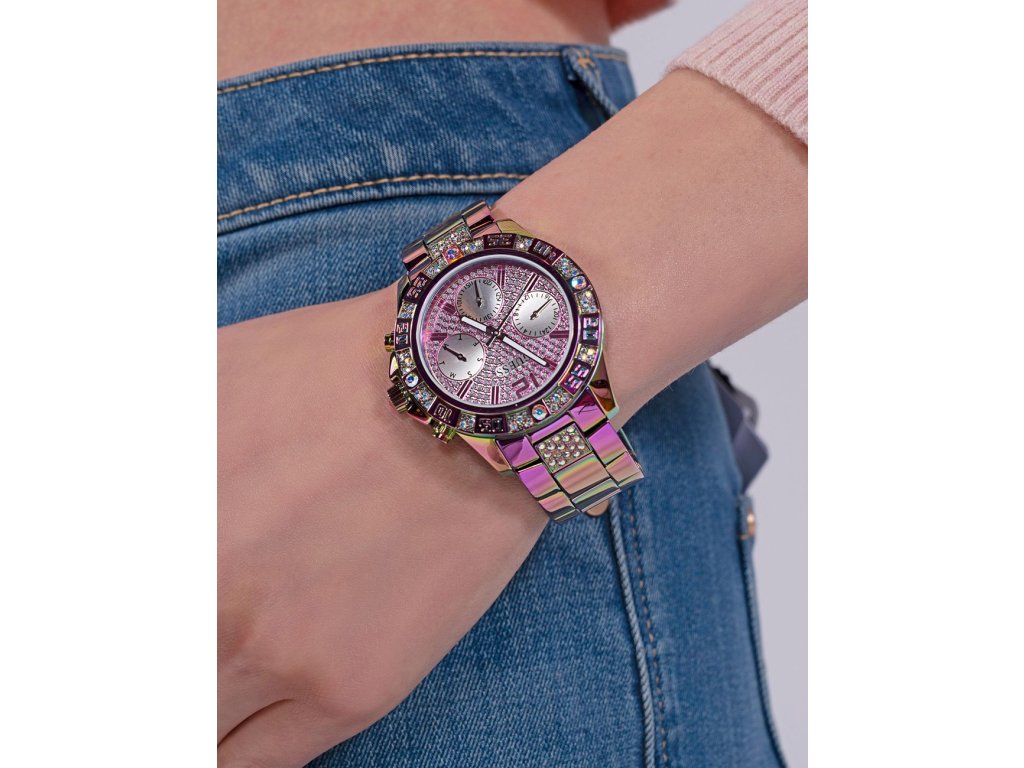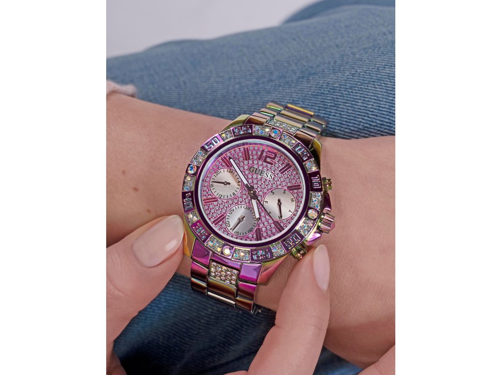 • Manufacturer no.: GW0771L4 • Manufacturer series: Majesty 42mm 5ATM • Functions: 24-hours, Date, Minute, Second, Hour, Day • Movement: Battery (quartz) • Movement label: Japan • Dial color: Pink • Display: Analog • Water resistant: 5 • Bezel: Fixed • Surface finish: Polished • Case color: Colorful • Case material: Stainless steel • Case thickness: 11 • Case shape: Round • Case trimming: Zirconia • Case width: 42 • Caseback: Stainless steel bottom, screwed • Gender: Ladies • Glas: hardened, Mineral glass • Lighting: Illum. hands • Style: Modern • Strap material: Stainless steel • Strap color: Colorful • Lug width: 10 • Clasp: Folding clasp • Max wrist circumferences: 200 • Item weight: 0.13 • Scope of delivery: Instruction, Box, Warranty doc., Packaging
