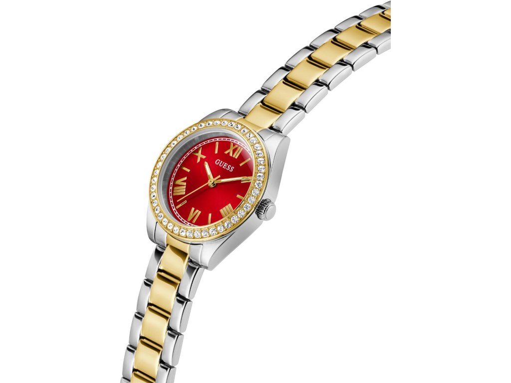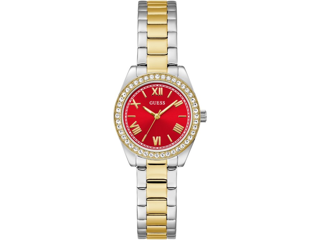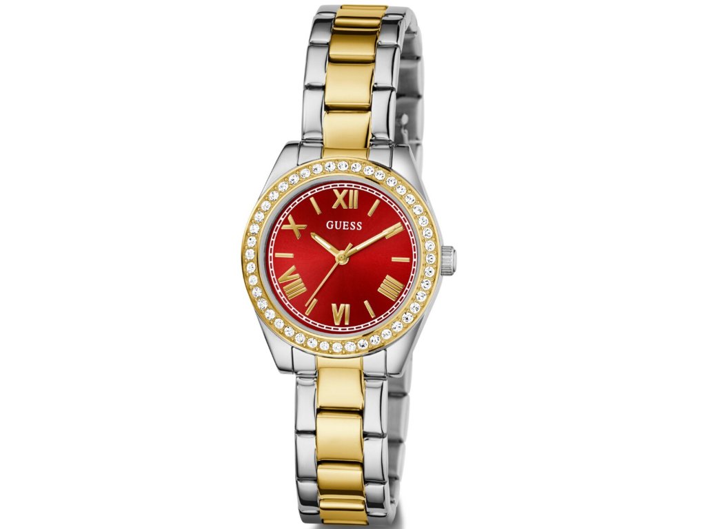 • Manufacturer no.: GW0841L8 • Manufacturer series: Mini Luna 30mm 3ATM • Functions: Minute, Second, Hour • Movement: Battery (quartz) • Dial color: Red • Display: Analog • Water resistant: 3 • Bezel: Fixed • Surface finish: Polished • Case color: Gold, Silver • Case material: Stainless steel • Case thickness: 8 • Case shape: Round • Case trimming: Zirconia • Case width: 30 • Caseback: Stainless steel bottom, pressed • Gender: Ladies • Glas: hardened, Mineral glass • Style: Modern • Strap material: Stainless steel • Strap color: Gold, Silver • Lug width: 14 • Clasp: Folding clasp • Max wrist circumferences: 185 • Item weight: 0.07 • Scope of delivery: Instruction, Box, Warranty doc., Packaging