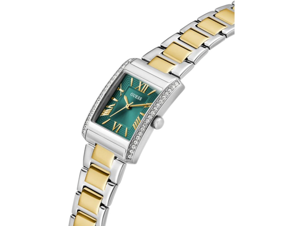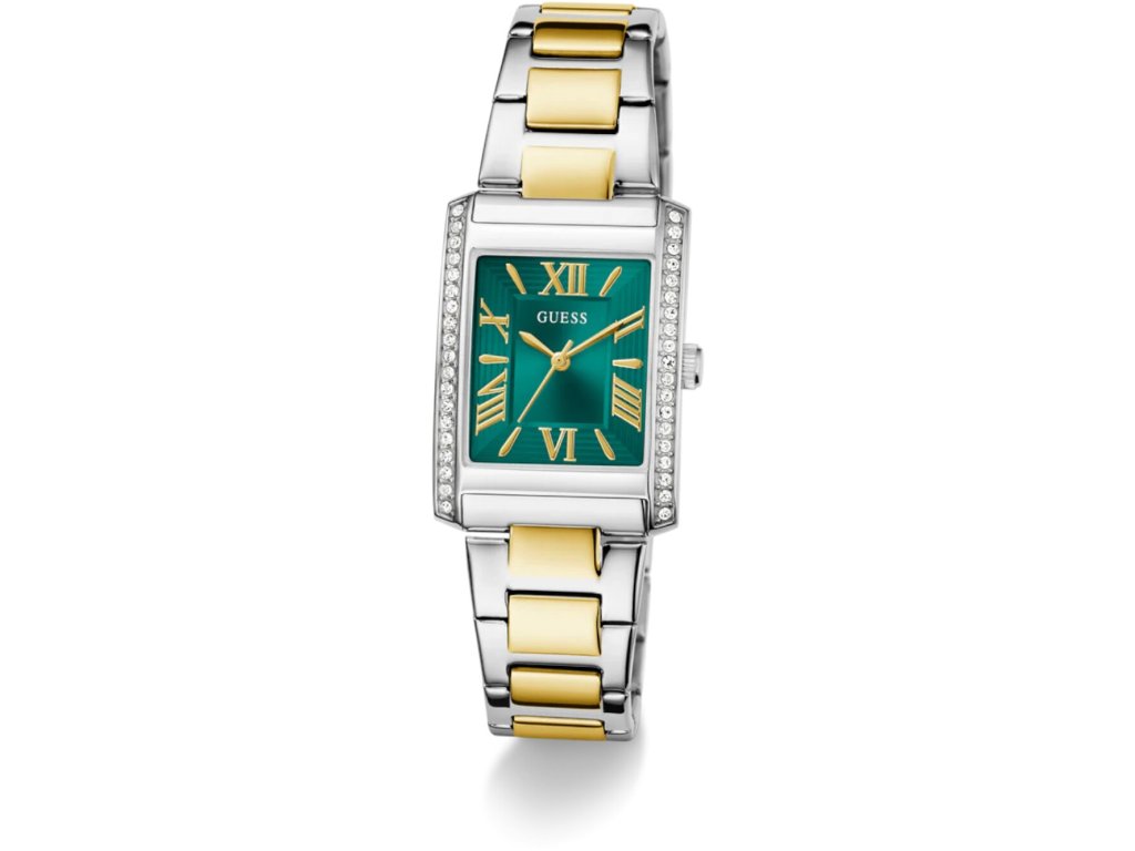 • Manufacturer no.: GW0874L2 • Manufacturer series: Bonnie 27mm 3ATM • Functions: Minute, Second, Hour • Movement: Battery (quartz) • Dial color: Green • Display: Analog • Water resistant: 3 • Bezel: Fixed • Surface finish: Polished • Case color: Silver • Case material: Stainless steel • Case thickness: 9 • Case shape: Square • Case trimming: Zirconia • Case width: 27 • Caseback: Stainless steel bottom, pressed • Gender: Ladies • Glas: hardened, Mineral glass • Style: Modern • Strap material: Stainless steel • Strap color: Gold, Silver • Lug width: 20 • Clasp: Folding clasp • Max wrist circumferences: 190 • Item weight: 0.08 • Scope of delivery: Instruction, Box, Warranty doc., Packaging