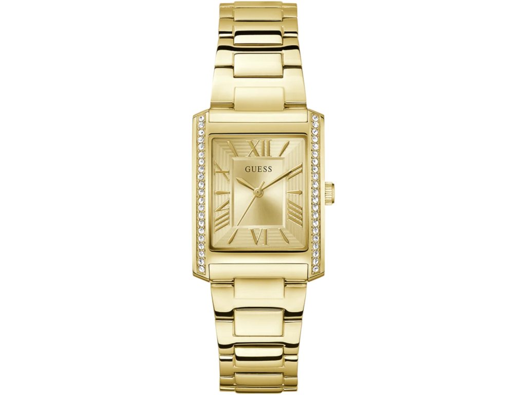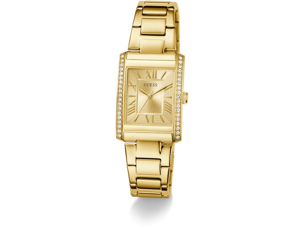 • Manufacturer no.: GW0874L4 • Manufacturer series: Bonnie 27mm 3ATM • Functions: Minute, Second, Hour • Movement: Battery (quartz) • Dial color: Golden • Display: Analog • Water resistant: 3 • Bezel: Fixed • Surface finish: Polished • Case color: Gold • Case material: Stainless steel • Case thickness: 9 • Case shape: Square • Case trimming: Zirconia • Case width: 27 • Caseback: Stainless steel bottom, pressed • Gender: Ladies • Glas: hardened, Mineral glass • Style: Modern • Strap material: Stainless steel • Strap color: Gold • Lug width: 20 • Clasp: Folding clasp • Max wrist circumferences: 190 • Item weight: 0.08 • Scope of delivery: Instruction, Box, Warranty doc., Packaging