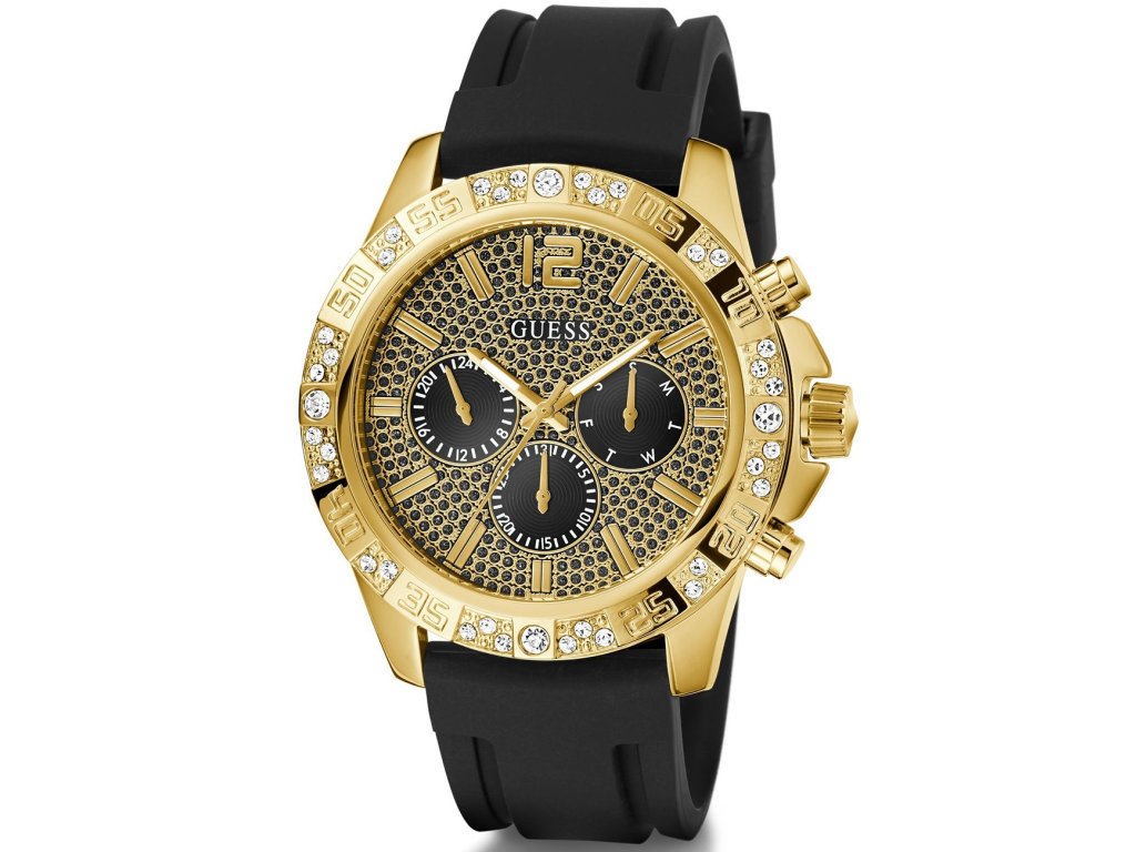 • Manufacturer no.: GW0909G2 • Manufacturer series: Majestic 50mm 5ATM • Functions: 24-hours, Date, Minute, Second, Hour, Day • Movement: Battery (quartz) • Movement label: Japan • Dial color: Golden • Display: Analog • Water resistant: 5 • Bezel: Fixed • Surface finish: Polished • Case color: Gold • Case material: Stainless steel • Case thickness: 12 • Case shape: Round • Case trimming: Zirconia • Case width: 50 • Caseback: Stainless steel bottom, screwed • Gender: Mens • Glas: hardened, Mineral glass • Lighting: Illum. hands • Style: Classic • Strap material: Silicon • Strap color: Black • Lug width: 24 • Clasp: Buckle clasp • Max wrist circumferences: 230 • Item weight: 0.12 • Scope of delivery: Instruction, Box, Warranty doc., Packaging